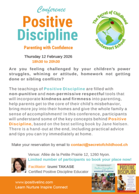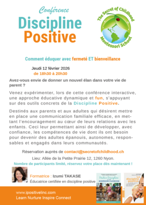 ACTUALITE,Évènement école Conférence Discipline Positive animée par Izumi Takase à l’école Montessori « The Secret of Childhood » Posté le 30/01/202630/01/2026 par Mark Reynolds Mark Reynolds Cuisinier – Chef / Sous-chef en restauration scolaire (spécialité cuisine végétale)